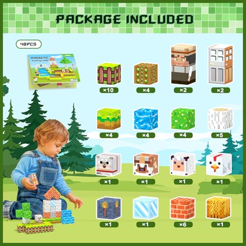 ● Magnetic Blocks Farm Life Set: Step into a delightful world of rural life with our magnetic building blocks set! Featuring a little farmer, along with cute animals,vibrant crops,torches..Kids can create their own bustling farm with magnetic blocks.Unleash your children’s creative thinking as they explore farm life and enjoy hours of imaginative role-play fun!